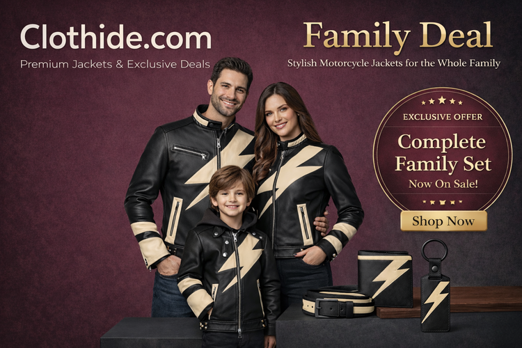 Menโs Black & Off-White Genuine Leather Two-Tone Jacket Outfit Set โ Jacket, Wallet, Belt & Keychain
