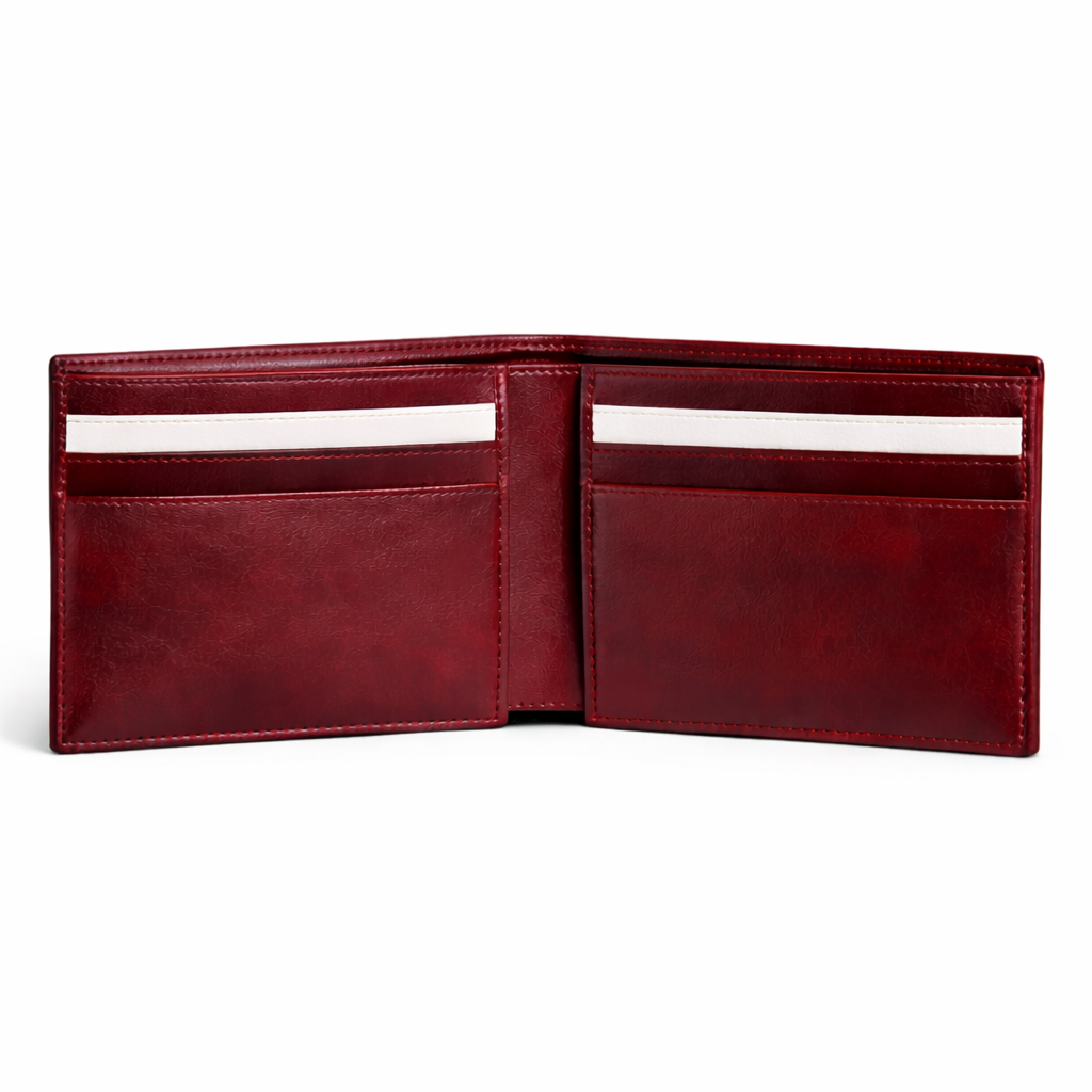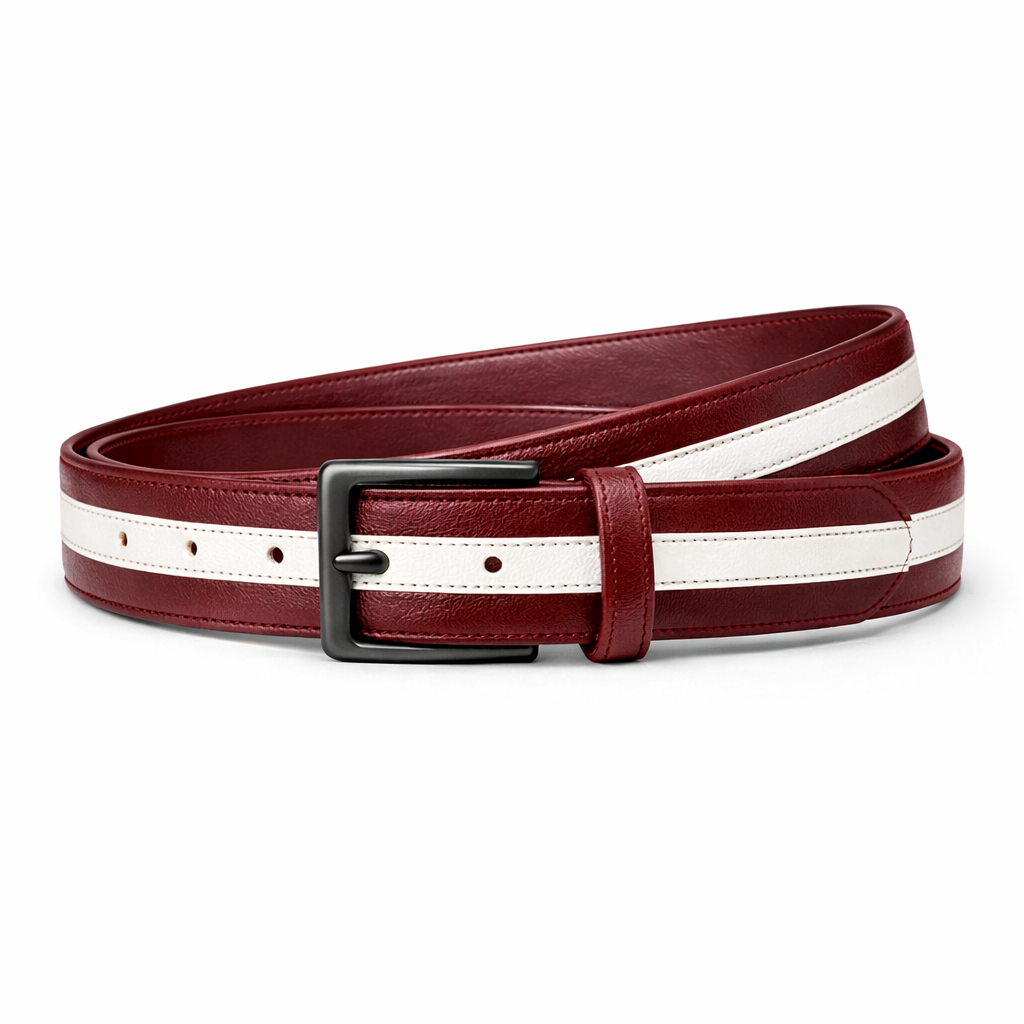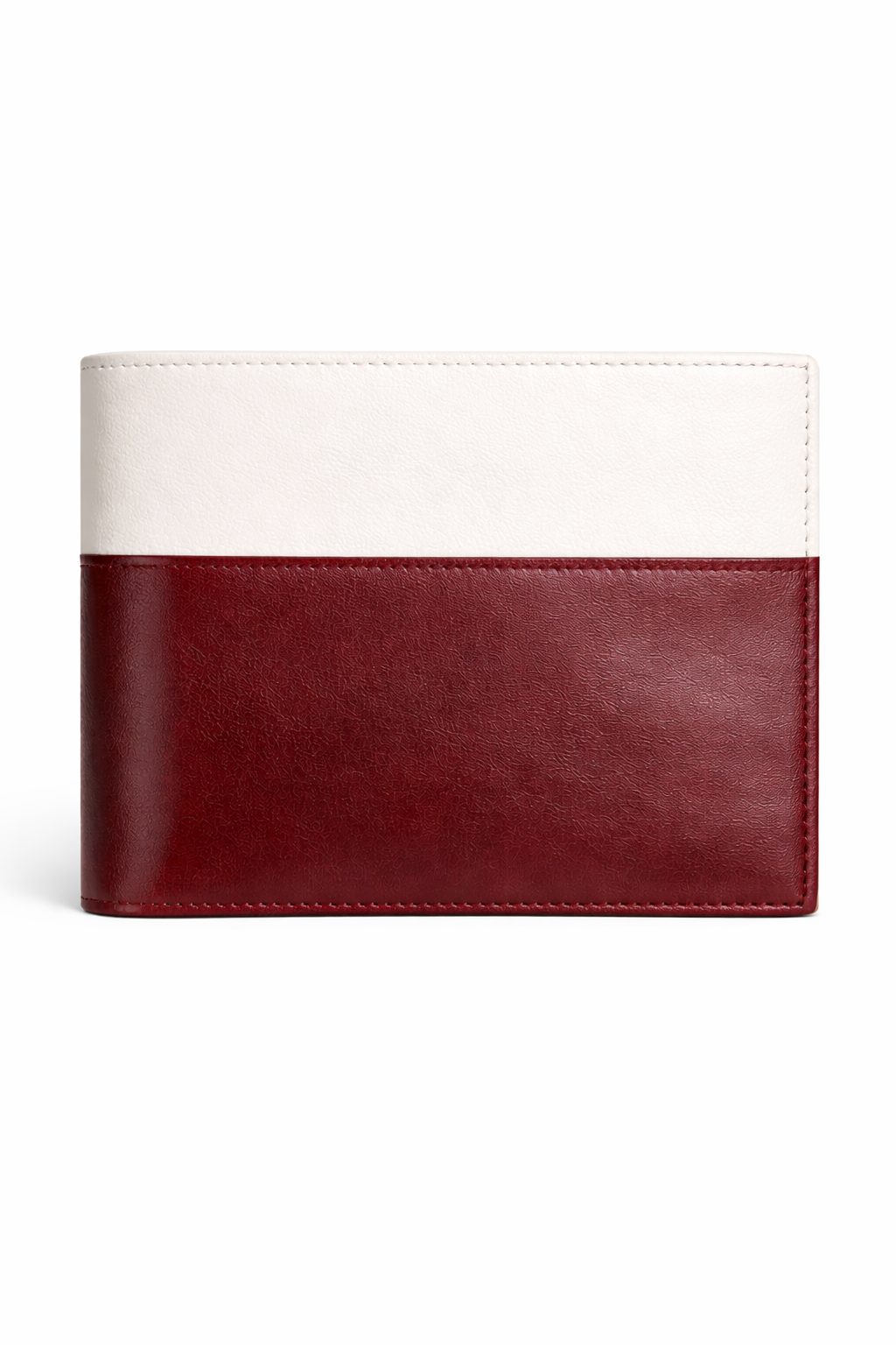 This men’s red and white leather outfit set is designed for everyday wear, offering a bold two-tone look with clean contrast detailing. The set includes a stand-collar leather jacket paired with a matching wallet, belt, and keychain, all coordinated in red and white tones for a sharp and cohesive appearance.
