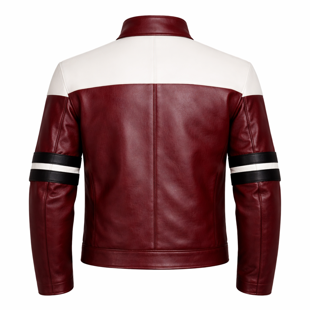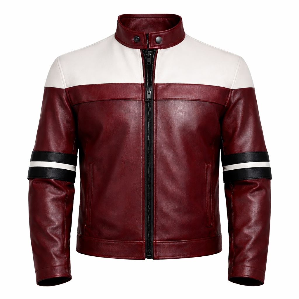 1 × Men’s Red & White Leather Stand Collar Jacket