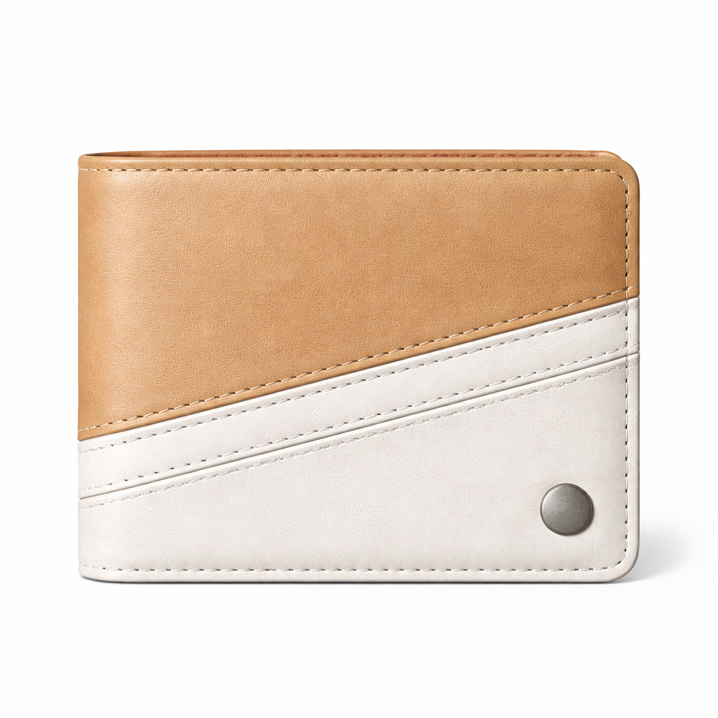This men’s white and tan leather outfit set is designed for everyday wear, offering a clean, modern look with a soft contrast color combination. The set includes a stand-collar leather jacket paired with a matching wallet, belt, and keychain, all coordinated in white and tan tones for a refined and balanced appearance.